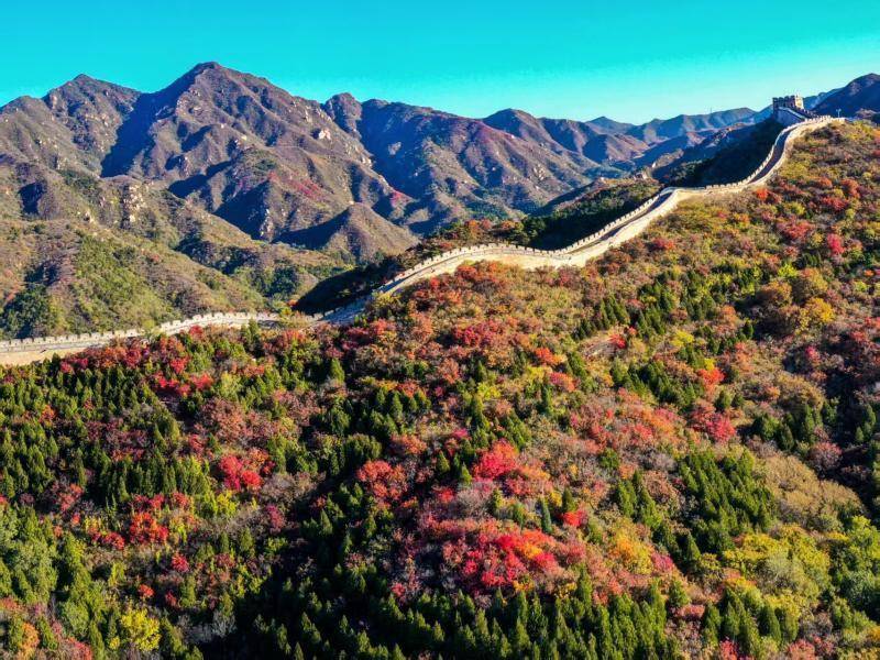 眼下正值八达岭国家森林公园第十九届红叶生态文化节期间。作为京郊知名的“红叶先驱”,八达岭红叶岭景区因海拔较高、气候温凉,红叶变色早、色泽浓郁,极具视觉冲击力。登高远眺,可见古老长城蜿蜒于崇山峻岭之间,与漫山红叶交相辉映,刚毅与柔美并存,共同勾勒出一幅壮丽而富有诗意的秋日长卷。