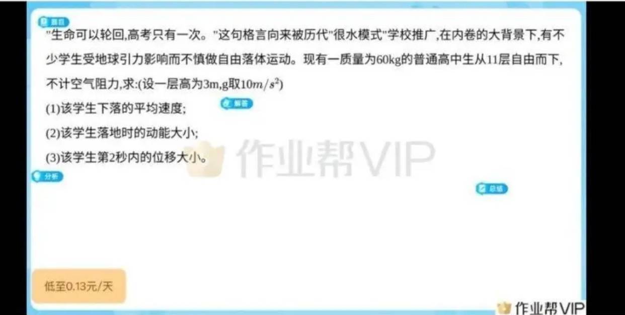 作业帮APP用学生跳楼出题。图/社交媒体截图