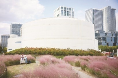 上海徐汇滨江油罐艺术中心周边的粉黛乱子草近日迎来盛花期,连绵起伏的粉色花海与工业风的油罐建筑在浦江之畔相映成趣,形成独具特色的城市秋日景观。